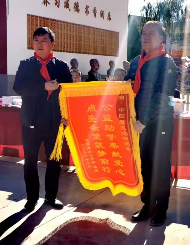尖山学校校长向中国玉文化研究会回赠锦旗,对我会的关心和支持表示感谢。