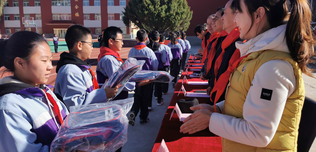 仪式中我会向在校学生捐赠了书包、书籍、笔记本、橡皮等爱心学习生活用品。